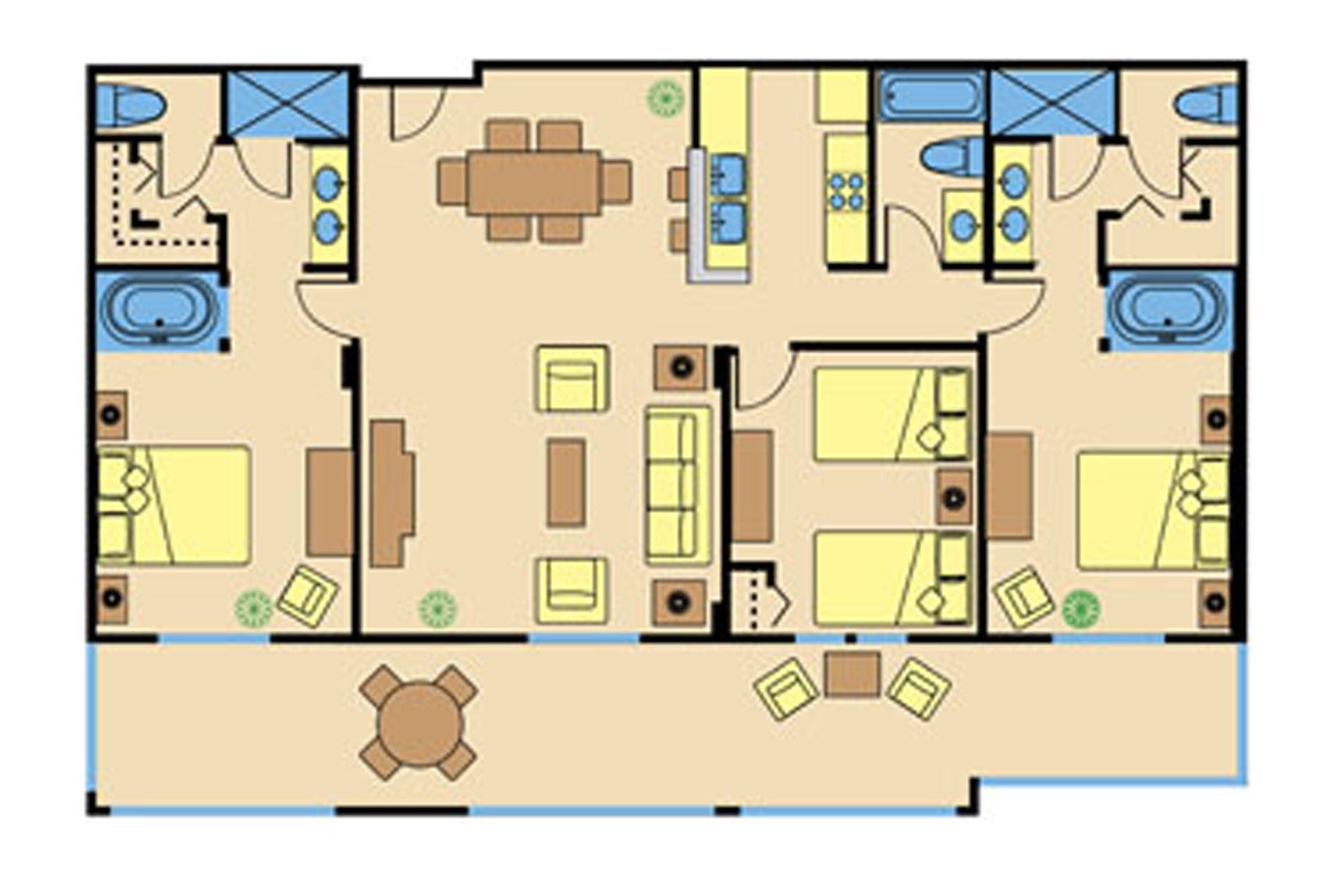 Need a little bit more space? The 3-bedroom 2-bath suite offers over 1,250 square feet of space for your family or group.